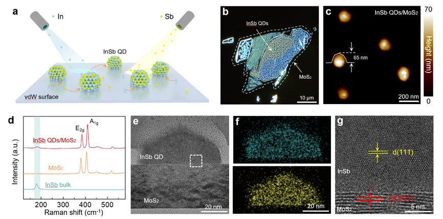 yl23411永利官网物理学系、量子态构筑与测控教育部重点实验室刘灿副教授与中国科公司半导体研究所翟慎强研究员、魏钟鸣研究员、刘峰奇研究员,北京大学刘开辉教授等团队合作,提出二维界面范德华外延半导体量子点(QD)新策略,突破了传统量子点晶格匹配外延限制,实现了多类III–V族、IV–VI族本征量子点的通用制备。2024年6月4日,相关成果以“Epitaxial growth of quantum dots on van der Waals surfaces”为题,在线发表于《....